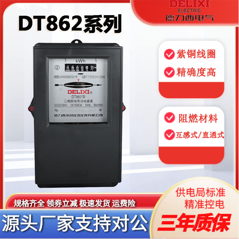 Pengukur daya aktif tiga fase empat kawat DT862-3 * 1.5(6)A 60A 80A100A