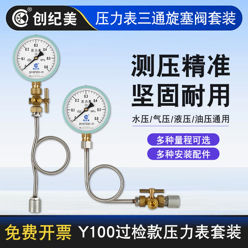 Y100 pengukur tekanan, pipa hidrolik stainless steel buffer katup bola tiga arah pengukuran tekanan