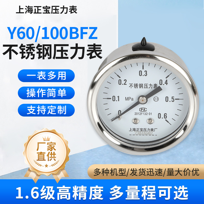Pengukur tekanan y60, aksesoris pompa udara pengukur tekanan udara biasa radial tekanan air 1.6 mpa
