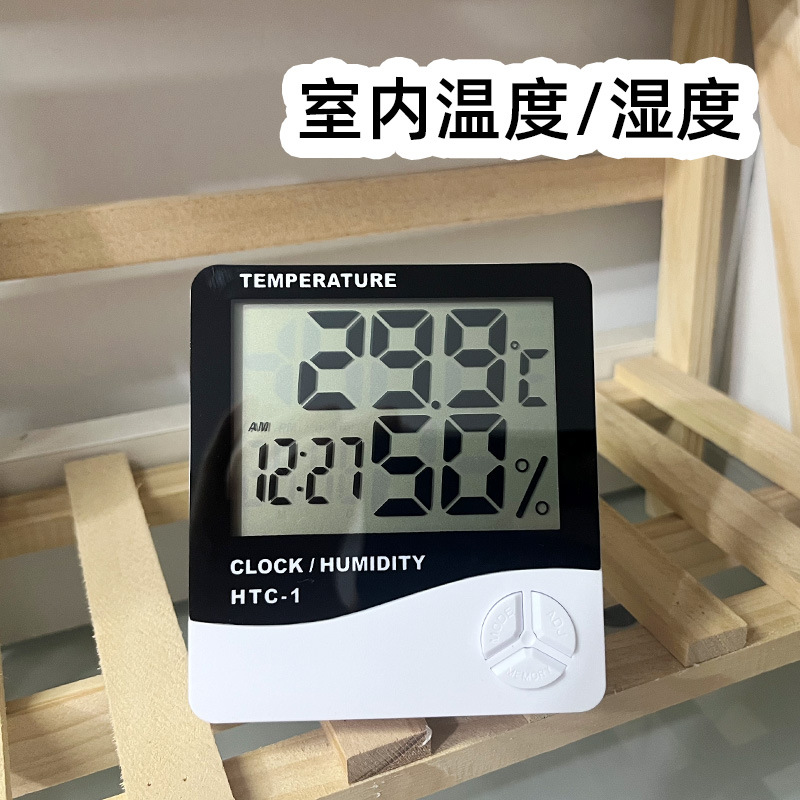 Jam alarm higrometer elektronik, pengukur suhu terpasang di dinding layar besar digital HTC-1 untuk lintas batas