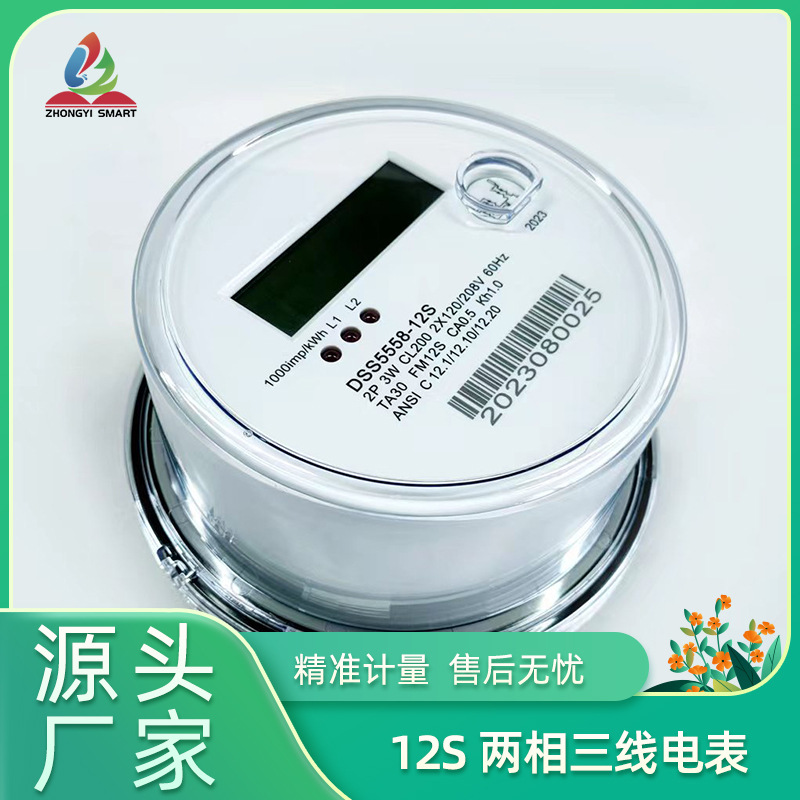 ANSI pengukur IoT jarak jauh 12s, meteran prabayar dua fase tiga-kawat 12s dipasang di dinding