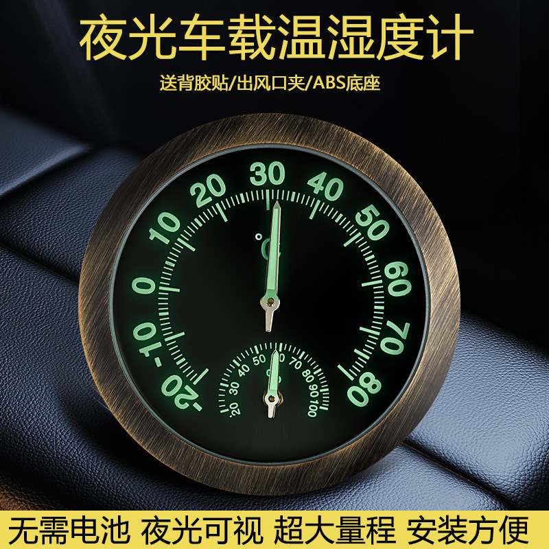 Pengukur suhu dan kelembapan mobil bercahaya cetak tiga, pengukur temperatur dan kelembapan Mobil presisi tinggi bebas baterai, jam tangan mekanis, meteran temperatur dan kelembapan mobil
