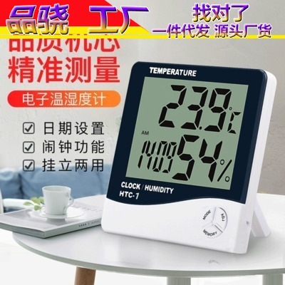 Termometer higrometer tampilan digital, termometer presisi tinggi untuk ruangan bayi, rumah dalam ruangan, dengan jam alarm, HTC-1