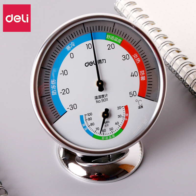 Deli termometer 9011 dalam dan luar ruangan penggunaan ganda presisi tinggi apotek anak-anak dalam ruangan ruangan bayi suhu higrometer presisi