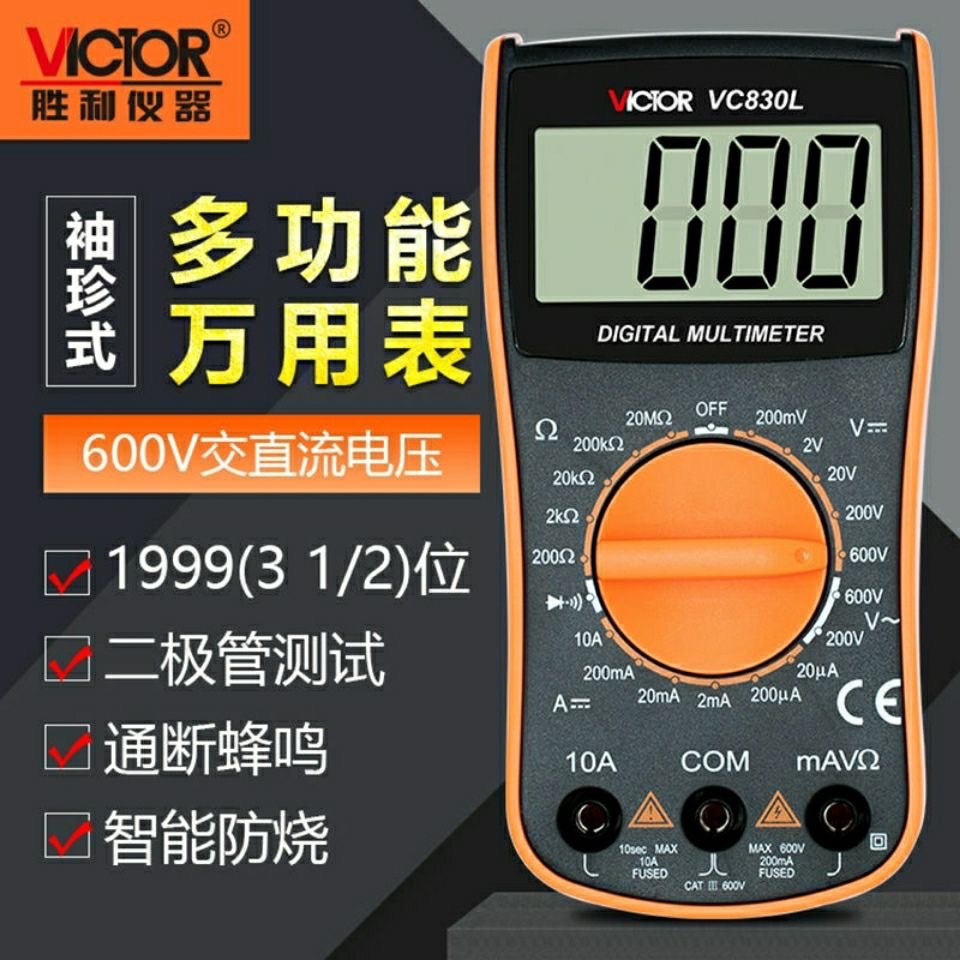 VICTOR victory multimeter digital mini, VC830L Multimeter digital rumah tangga presisi tinggi bel tampilan digital multimeter tukang listrik