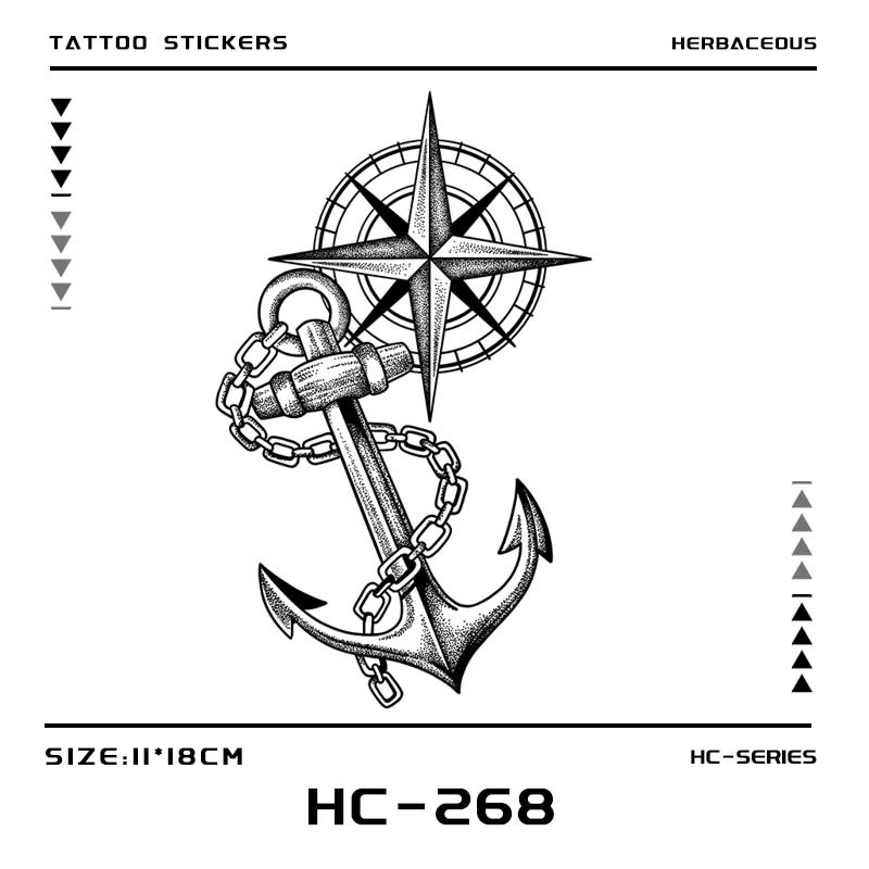 Stiker tato herba jangkar kapal kompas geometris laut mendominasi kreatif tradisional tato pria dan wanita tahan lama tahan air dan tahan keringat