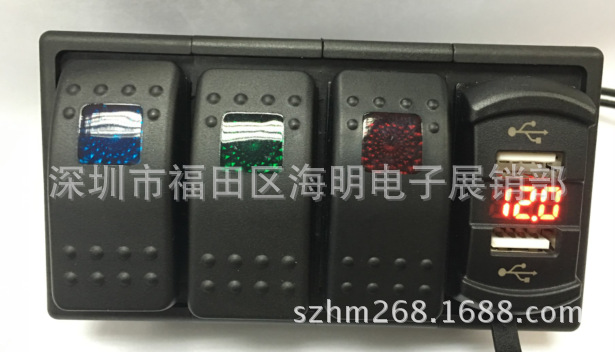 USB dengan voltmeter Marine yacht switch panel 4 kelompok kombinasi switch dengan soket pemantik rokok 12-24v