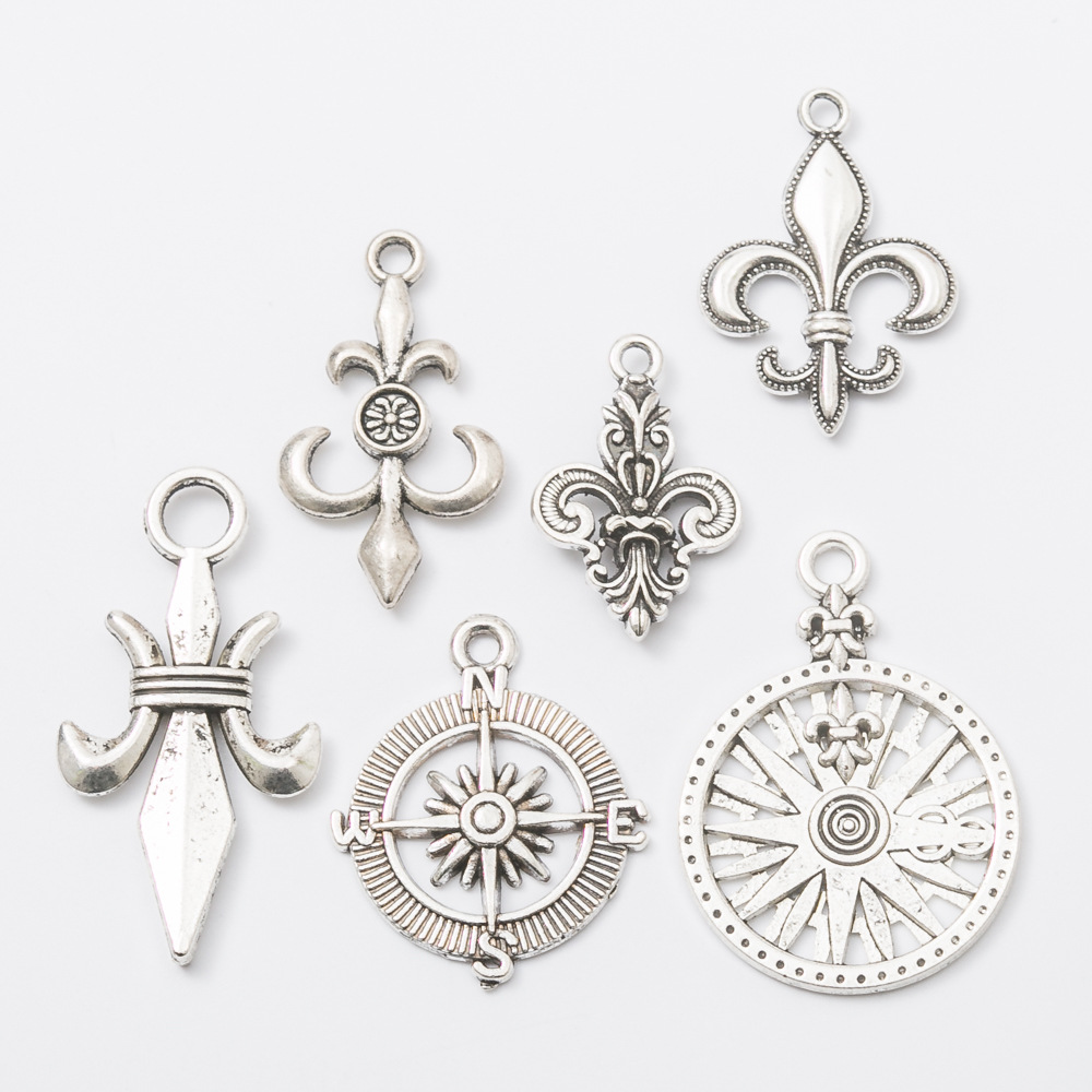 DIY aksesori perhiasan logam campuran perak kuno Vintage jangkar kompas bahan buatan tangan