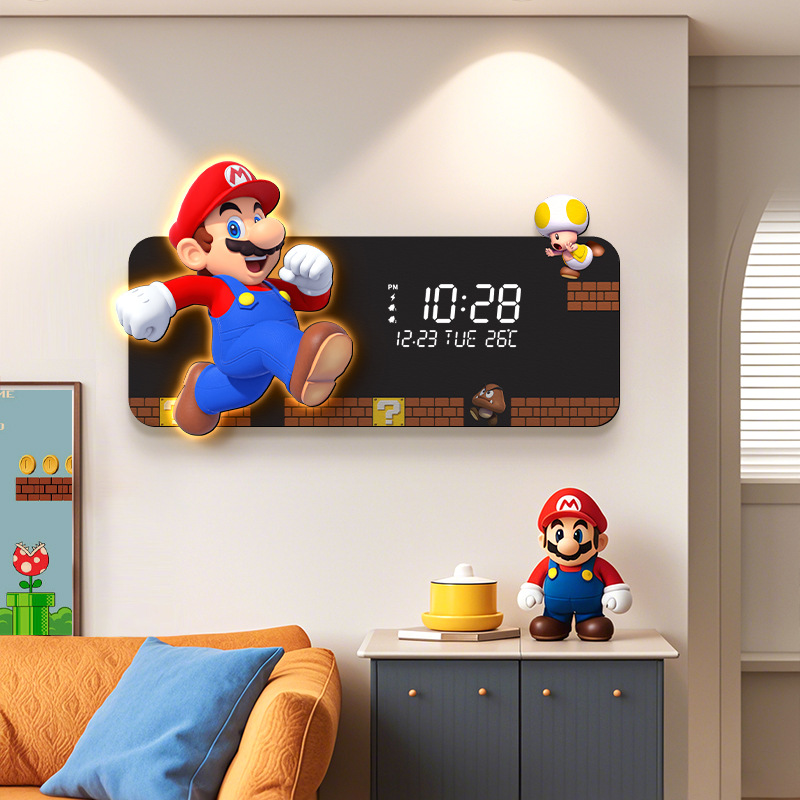 马里奥电子挂钟客厅家用创意艺术钟表2025新款卡通挂墙儿童房时钟