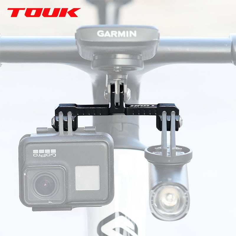 TOUK Rak Kode Sepeda Braket Lampu Mobil Ganda Antarmuka GOPRO Penyangga Lampu Depan Ganda Jalan Raya Paduan Aluminium