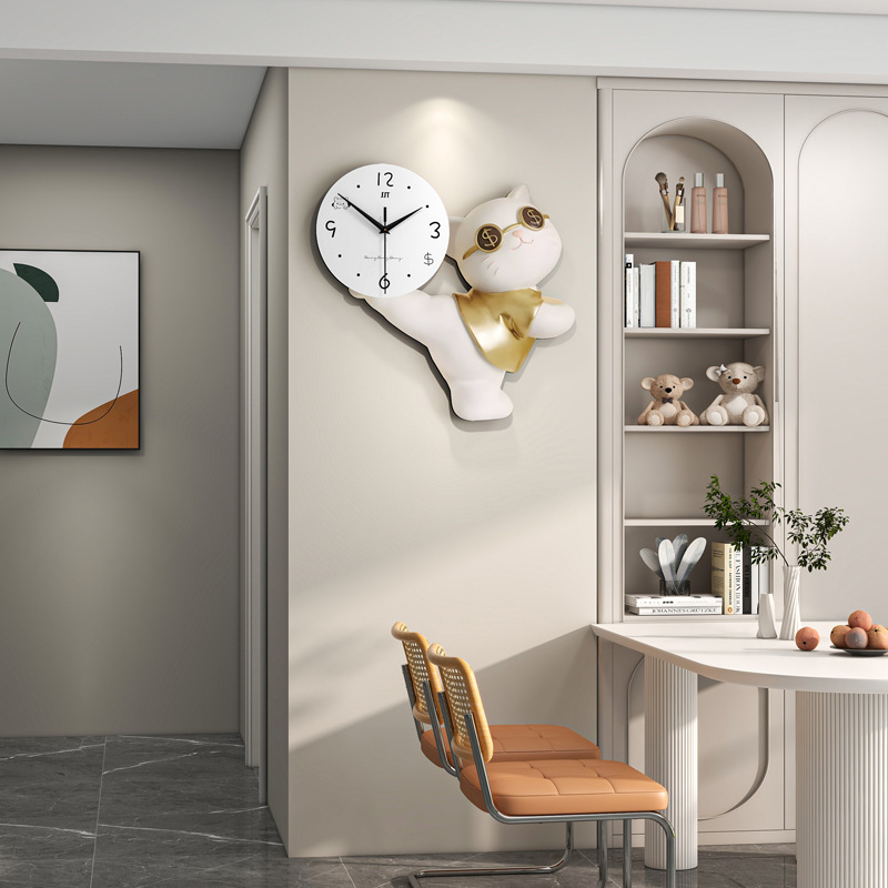 挂钟客厅高级感现代简约家用装饰钟表创意卡通猫咪时钟挂墙免打孔