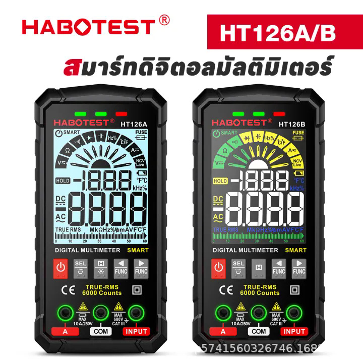 HABOTEST HT126B Multimeter Digital Layar Warna Sangat Tipis Akurasi Tinggi Multifungsi Multifungsi Otomatis Digital Meter