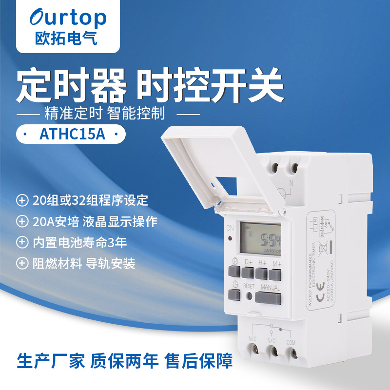 Autoneum saklar kontrol waktu pengatur waktu profesional, pemasangan rel waktu otomatis ATHC15 20A 30A