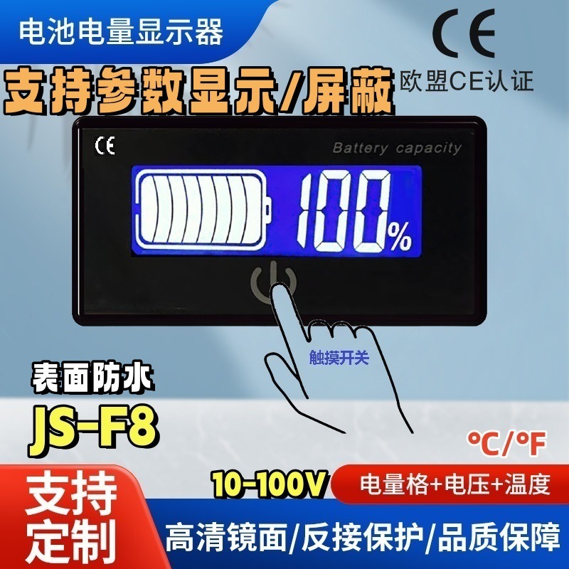 Tingkat Baterai Display Lithium Baterai Persentase Tegangan Listrik Suhu Daya Multi Fungsi Instrumen JS-F8