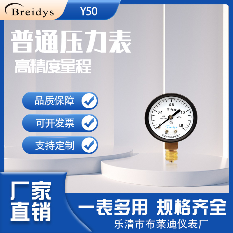 Penjualan langsung pabrik Y50 pengukur tekanan biasa pengukur tekanan pneumatik pengukur tekanan air PT1/4 M14 * 1.5 0-1, 6mpa
