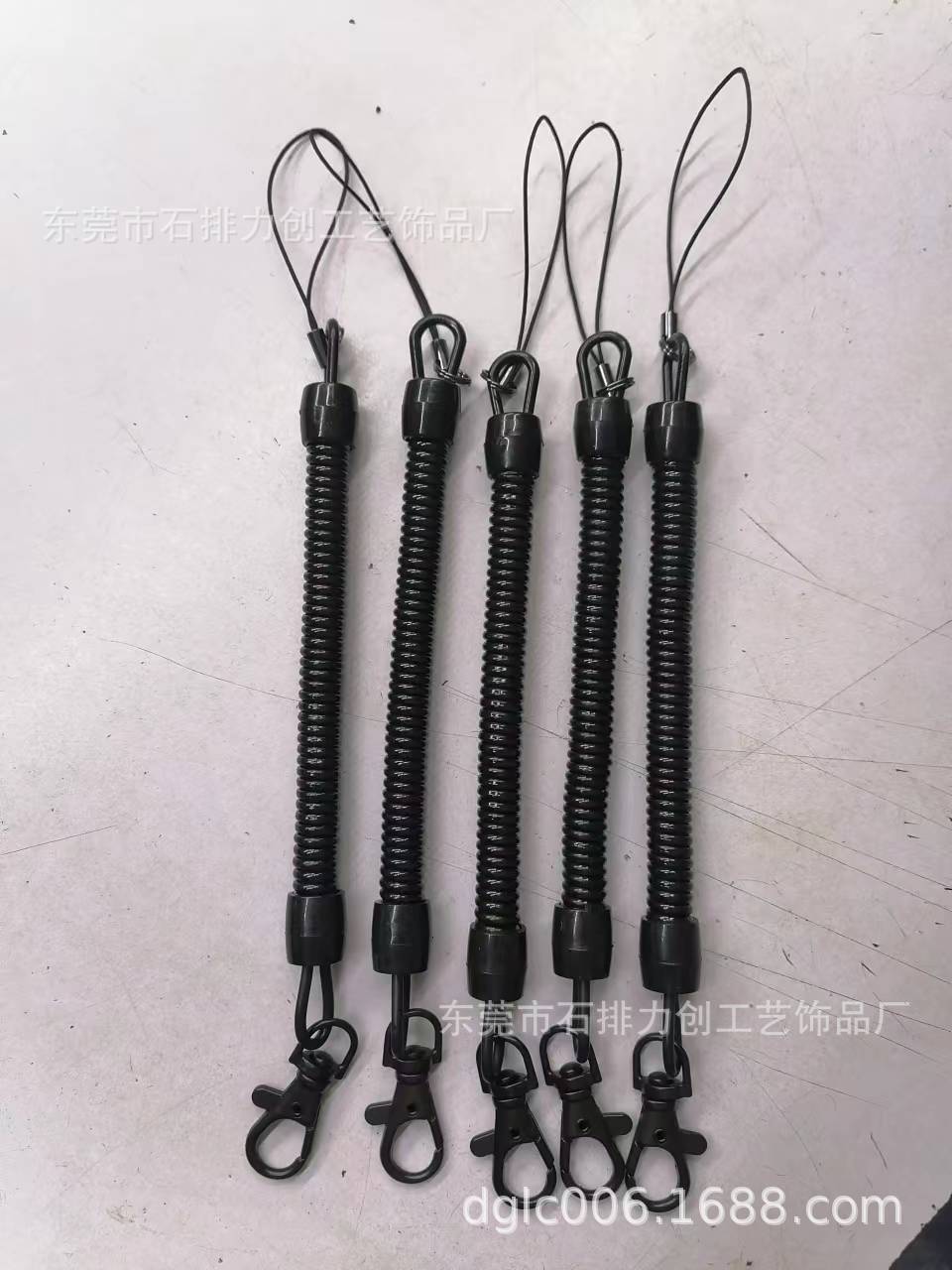 Detektor gantungan kunci tali musim semi hitam lanyard Musim Semi antihilang telepon seluler orang tua tali antimaling penjualan langsung dari pabrik