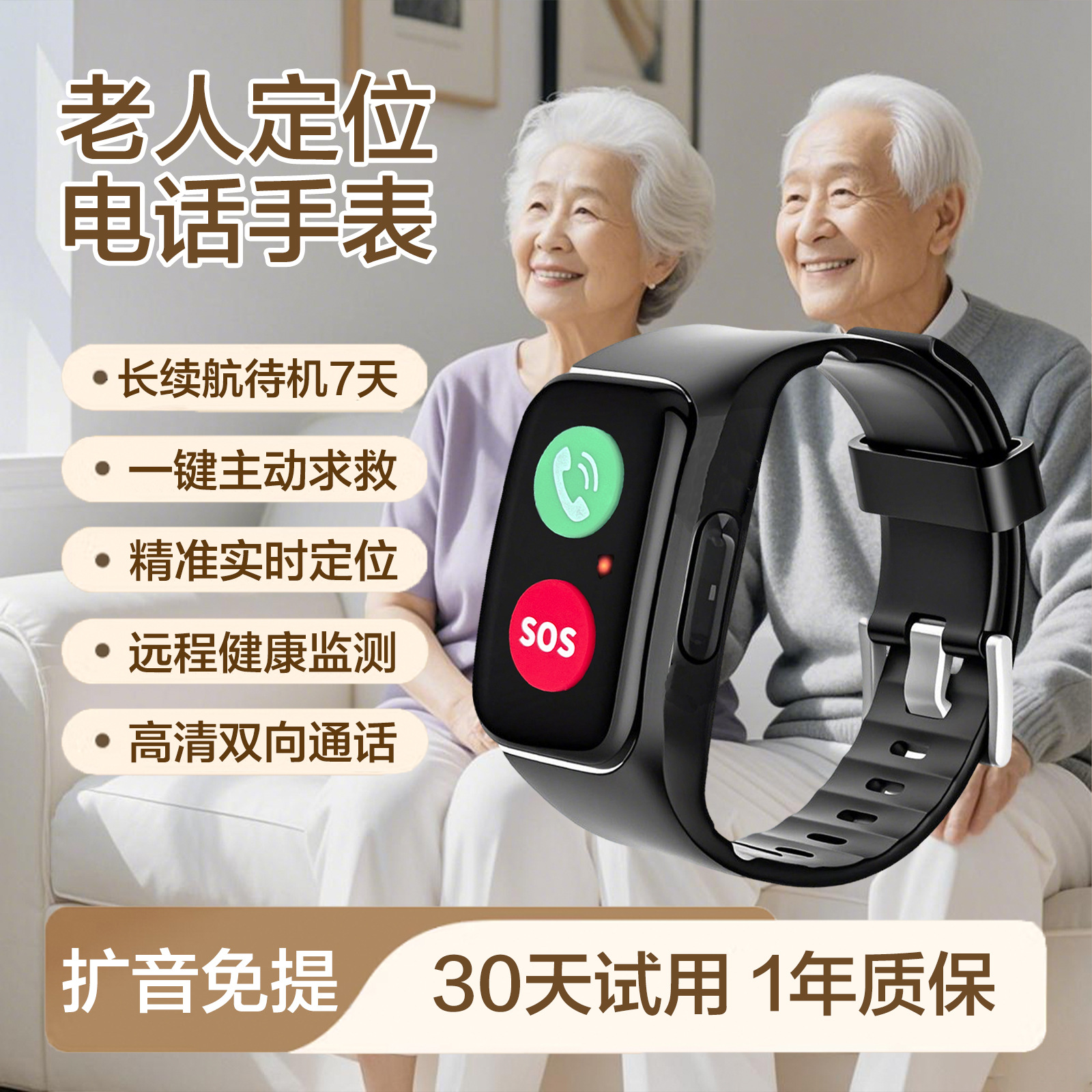 Jam tangan telepon orang tua 4G, gelang pemosisian gps anti hilang orang tua, panggilan HD volume tinggi baterai tahan lama