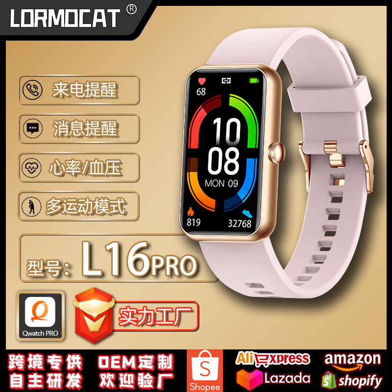 L16Pro Qwatch pro gelang pintar lintas batas, jam tangan pintar pengukur denyut jantung oksigen darah dengan informasi dan pengingat