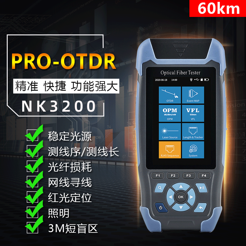 OTDR penguji kesalahan penghalang gelombang, pencari kesalahan kabel optik detektor kesalahan PRO reflektor domain waktu optik NK3200