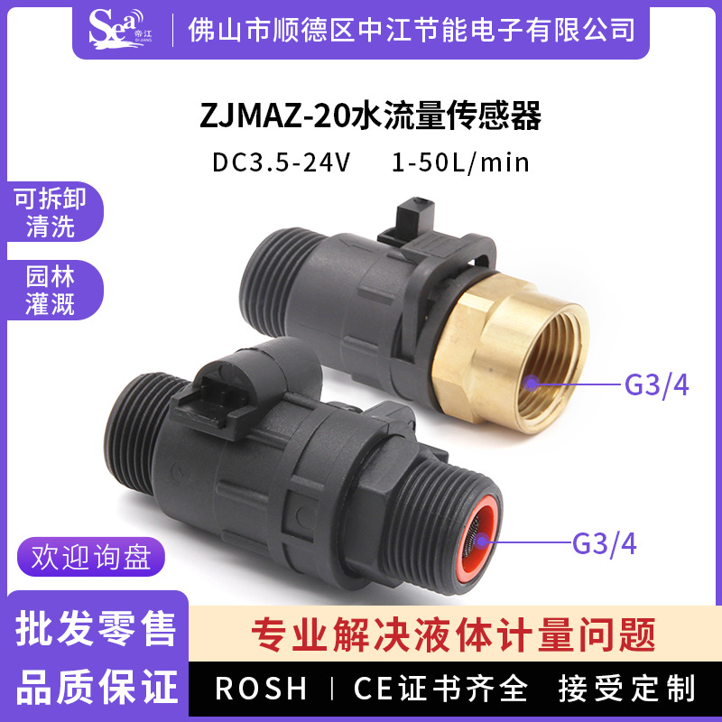 Sensor aliran air Hall dengan antarmuka G3/4, sakelar aliran air untuk AC, meter aliran air, irigasi pertanian 6-titik