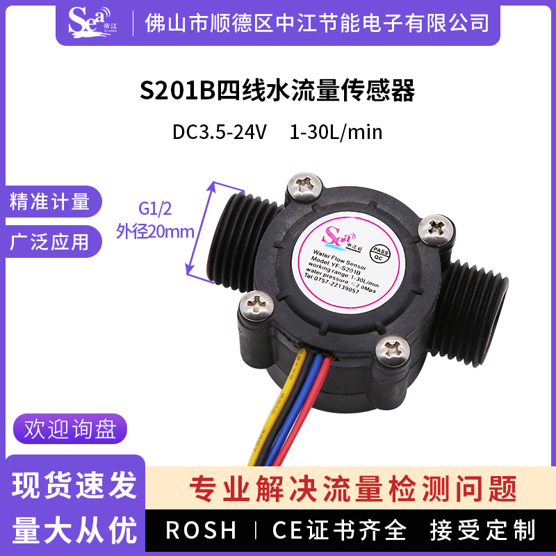 4 Cabang sensor aliran air Hall flow meter pemanas air sensor aliran air S201B empat garis langsung dari pabrik