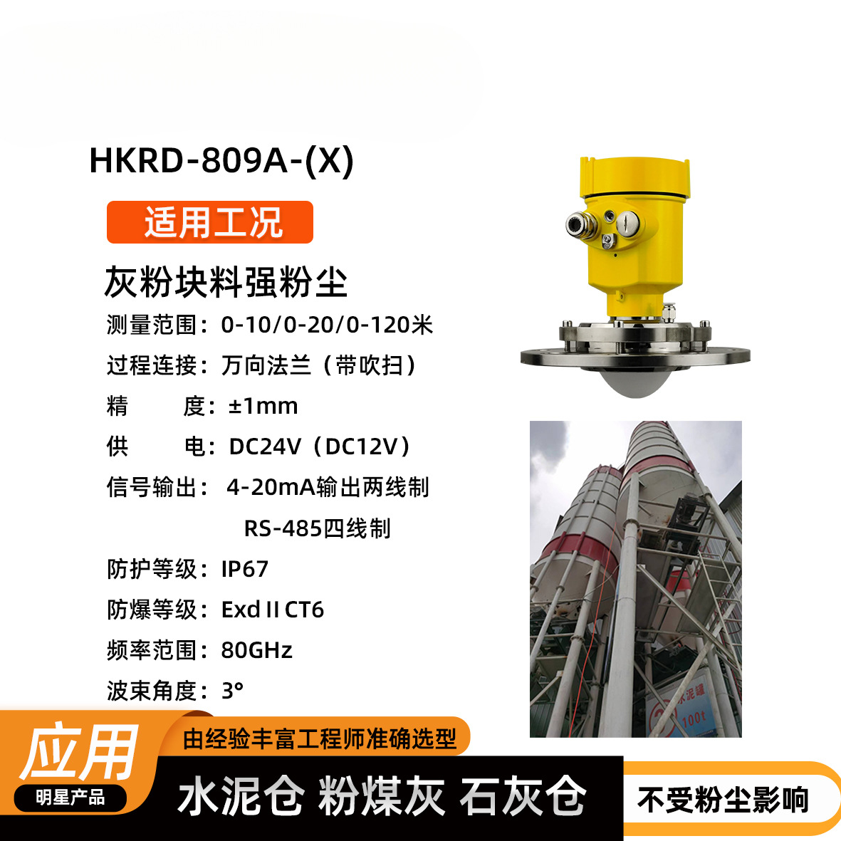Hongyi Intelligent 80G FM radar level meter 26G corong mulut pengukur level limbah pengukur level debu pengukur level material
