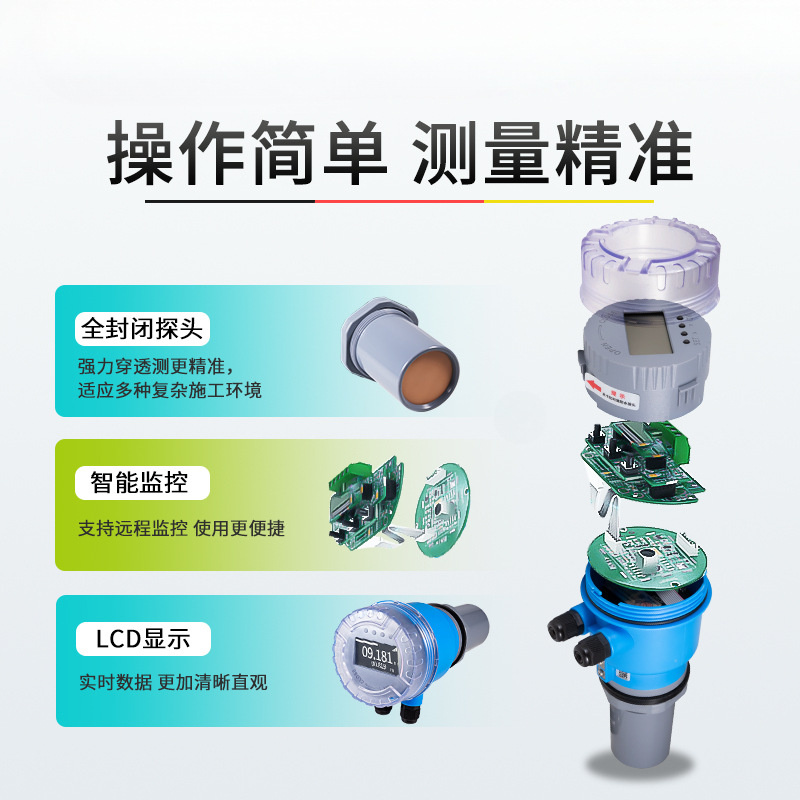 Pengukur level ultrasonik cerdas, pengukur level digital anti korosi, tangki penyimpanan tingkat bahan 4-20mA, pengontrol tingkat cairan presisi tinggi
