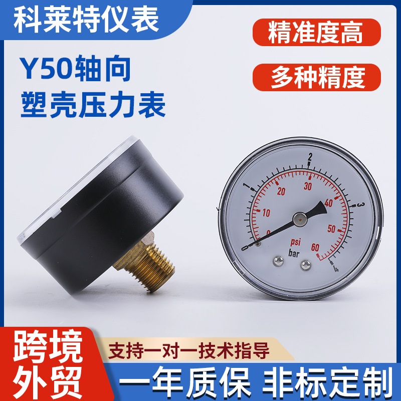 Ship Y50 Horizontal Pengukur Tekanan Plastik Aksial Pengukur Udara Meteran Udara Meja Aksial Lintas Batas Aksesoris Pompa