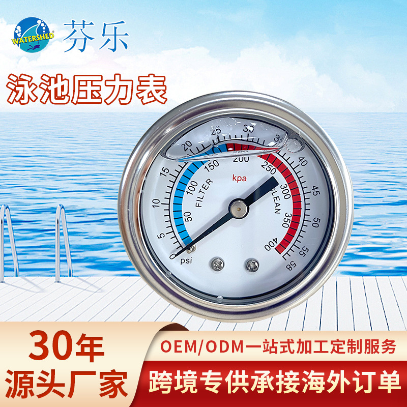 Pengukur tekanan kolam renang kepala silinder pasir, pengukur tekanan baja tahan karat, pengukur tekanan negatif vakum, perawatan air, pengukur tekanan minyak presisi