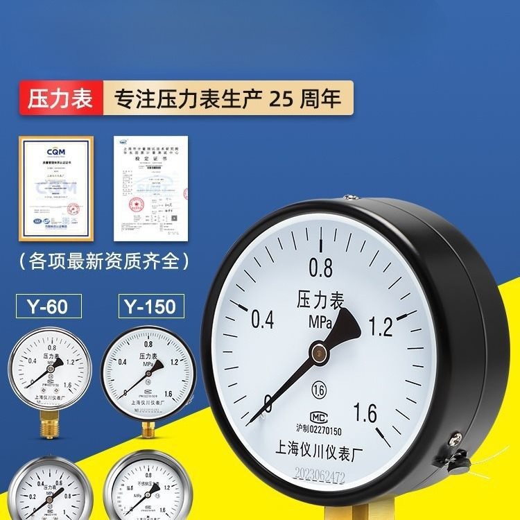 Shanghai Yichuan Instrument Factory Pengukur Tekanan Tekanan Udara Y100 Tekanan Air Tekanan Air Tekanan Negatif Hidrolik Tekanan Minyak Tekanan Udara Stainless Steel
