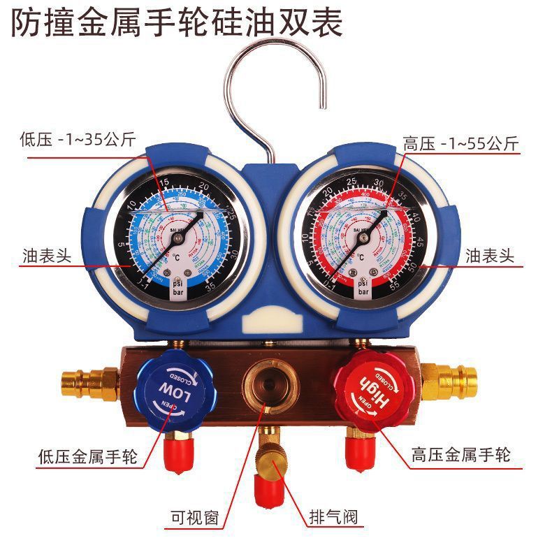 Pengukur tekanan Refrigerant grosir pabrik pompa udara tekanan tinggi dan rendah pengukur tekanan pengisian minyak pendingin pendingin udara kulkas penyimpanan dingin