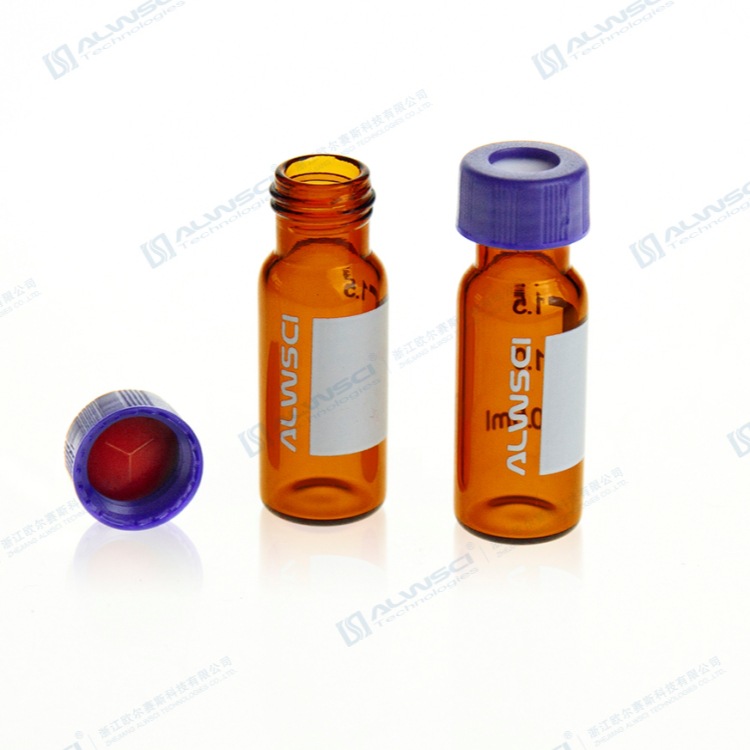 Botol sampel otomatis kromatografi 2ml, cairan gas cokelat transparan dengan timbangan tanpa timbangan, botol kecil