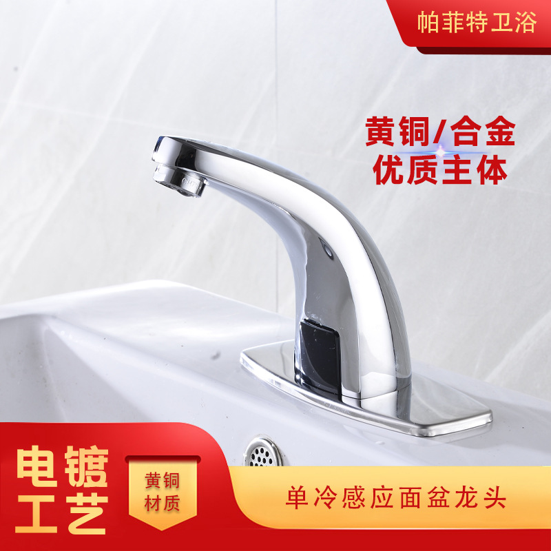 Wastafel keran induksi hotel toilet umum, keran kamar mandi inframerah panas dan dingin bahan tembaga