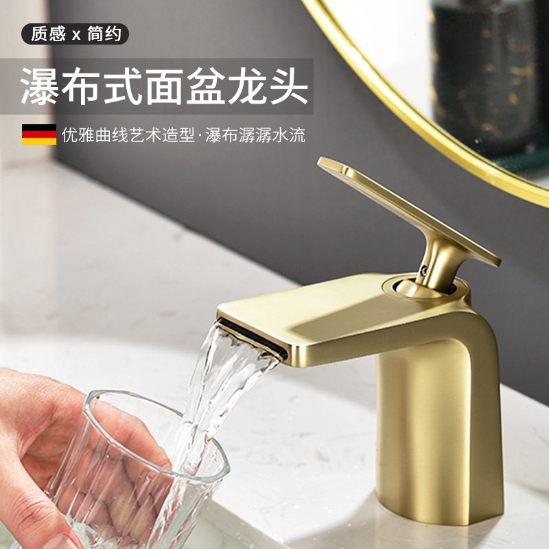 Keran wastafel tembaga baru, keran air terjun, outlet air cuci panas dan dingin, keran hitam lubang tunggal setelan MT1003