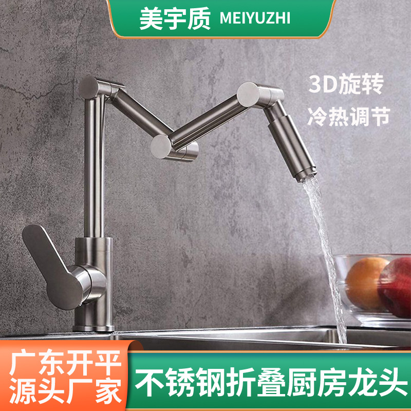 Keran dapur stainless steel, 304 lengan mekanis tahan karat, keran dapur lipat universal sikat panas dan dingin