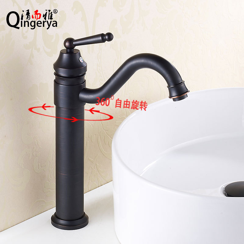 Keran wastafel kamar mandi, keran wastafel kamar mandi gaya Eropa panas dan dingin, keran kuno hitam tembaga khusus lintas batas dengan rotasi tinggi
