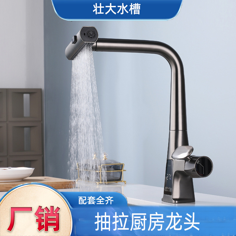Keran wastafel, rumah tangga modern sederhana berputar pull-out tampilan digital panas dan dingin keran hujan terbang