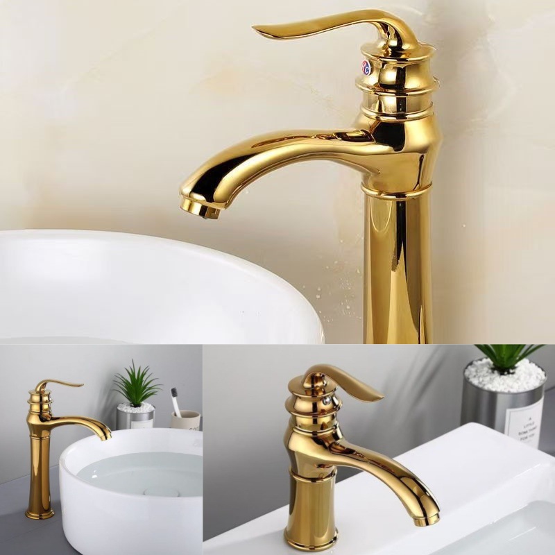 Keran wastafel tembaga, gaya Eropa, keran seni bak, keran emas, bak cuci bawah, keran panas dan dingin berlapis emas
