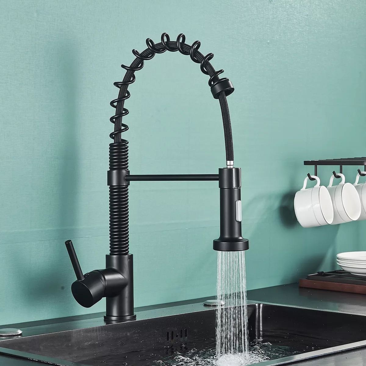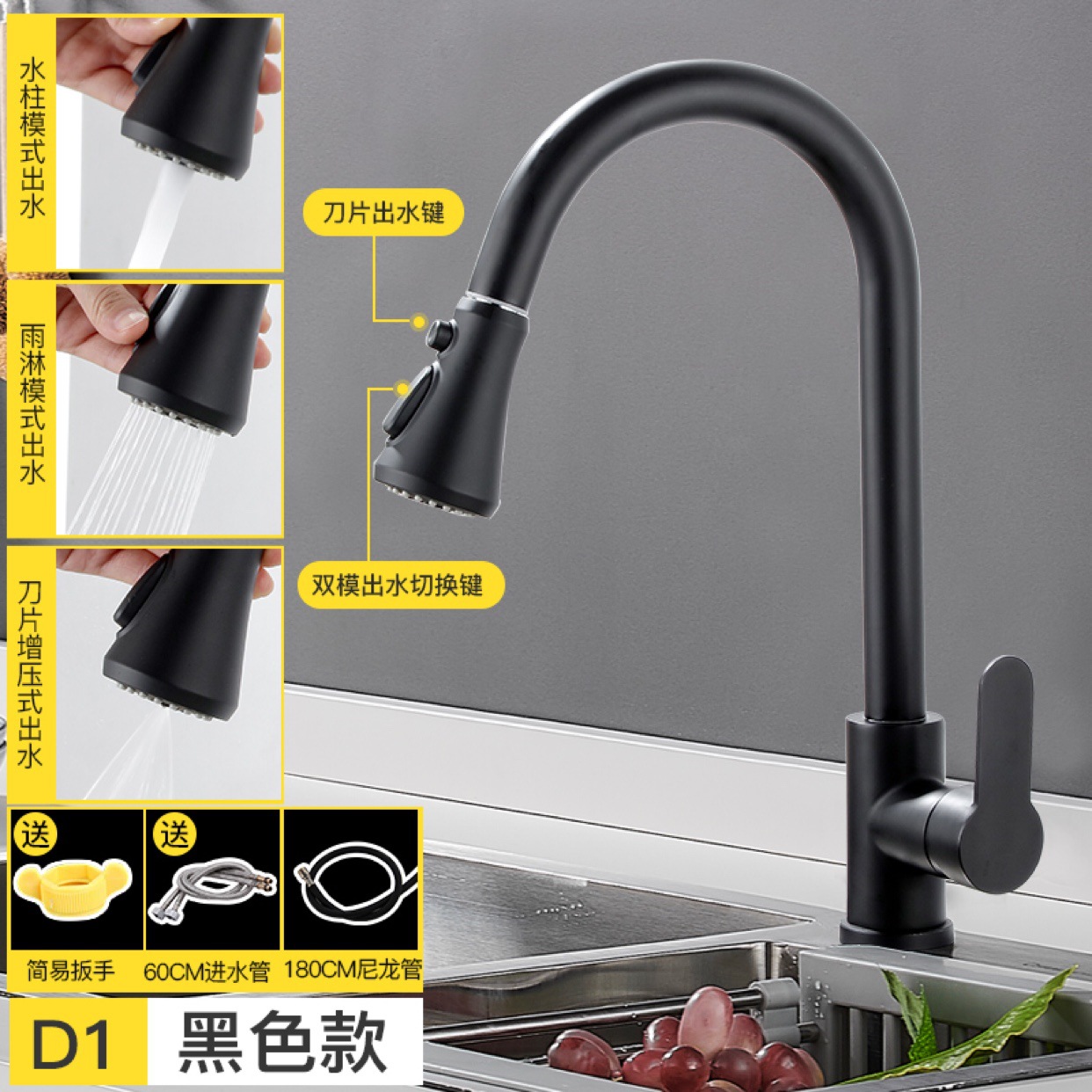 Keran tembaga hitam grosir wastafel tarik keluar panas dan dingin keran dapur tujuan ganda dapat ditarik keluar