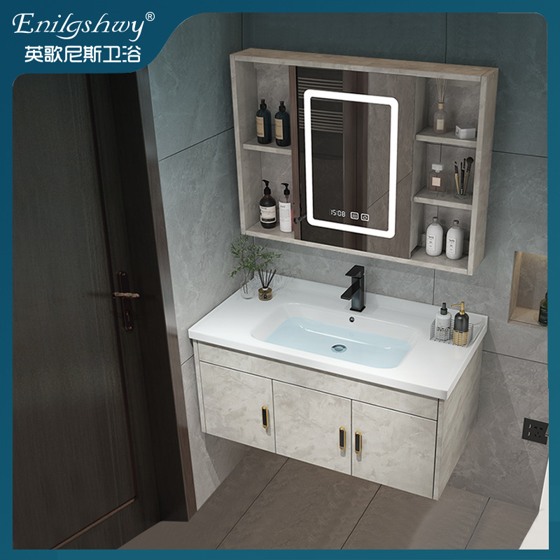EGNS Yingge kombinasi kabinet kamar mandi, kabinet kamar mandi kayu solid bagus, kabinet keramik kamar mandi, kombinasi meja cuci sederhana
