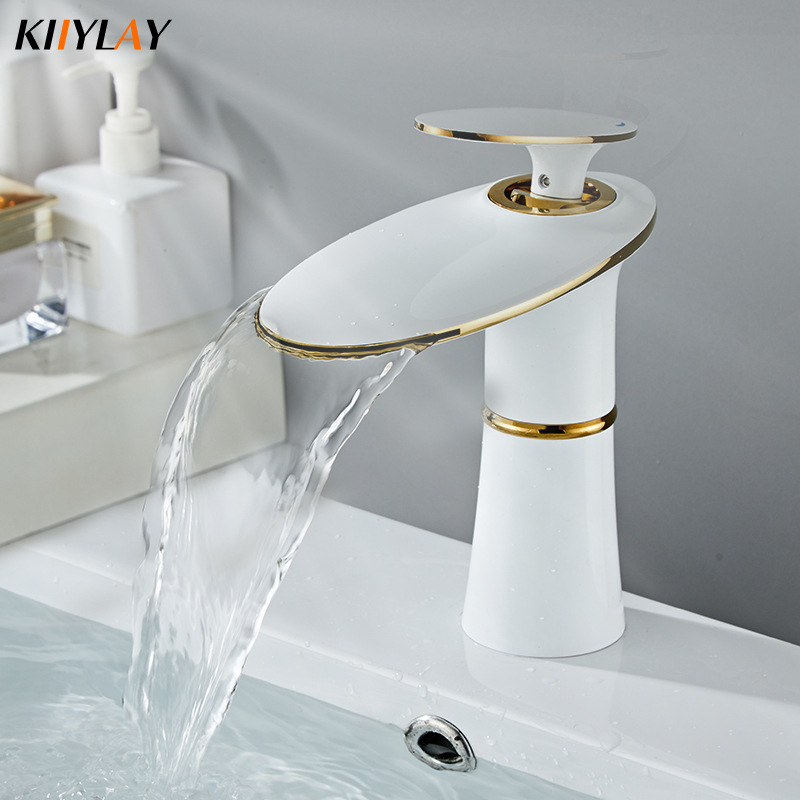 Keran air terjun persegi, lintas batas perdagangan luar negeri keran air terjun tembaga baskom cuci rumah tangga keran lubang tunggal pencampur air panas dan dingin