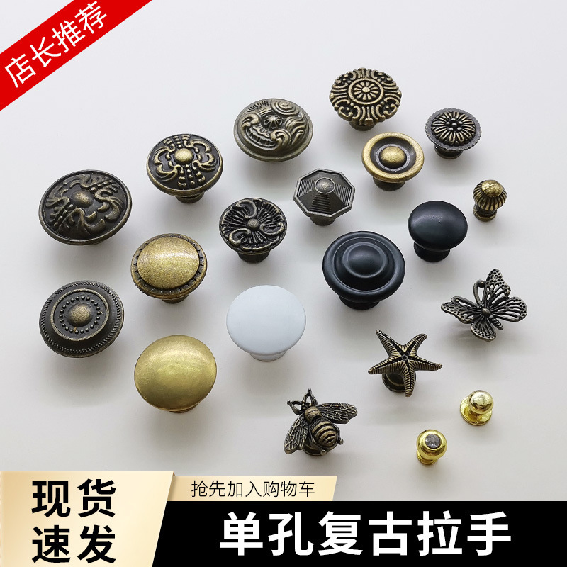 仿古青古铜拉手古典豪华衣柜抽屉单孔花型拉手美式复古金色拉手