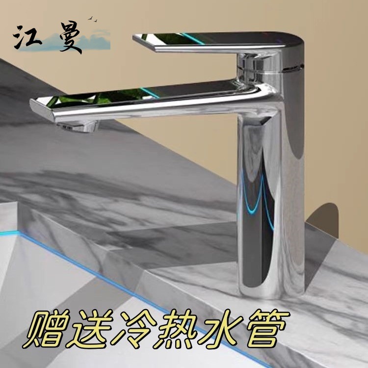 Keran wastafel kabinet kamar mandi, keran wastafel tembaga penggunaan ganda panas dan dingin satu lubang pegangan tunggal