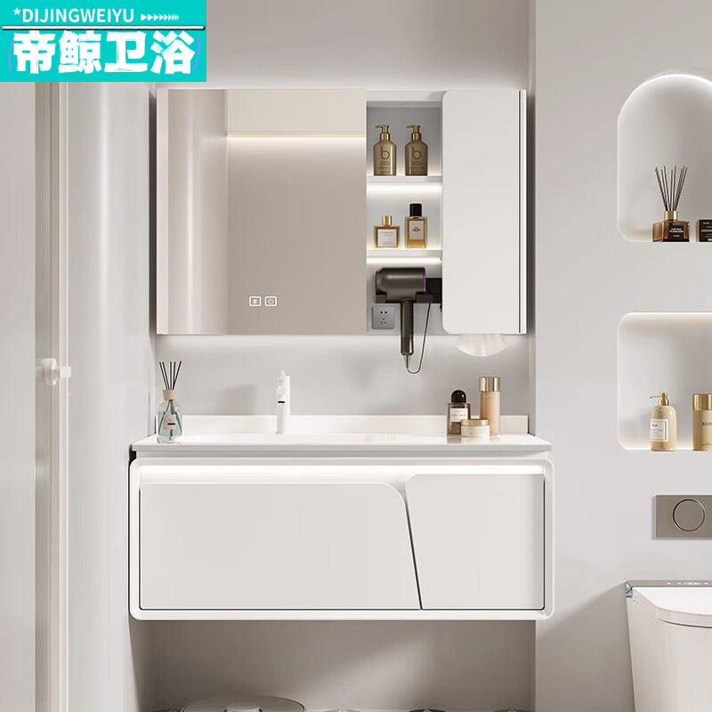 2023 kabinet kamar mandi cat ek, Krim Perancis baskom terintegrasi keramik piring batu apartemen kecil, Meja cuci