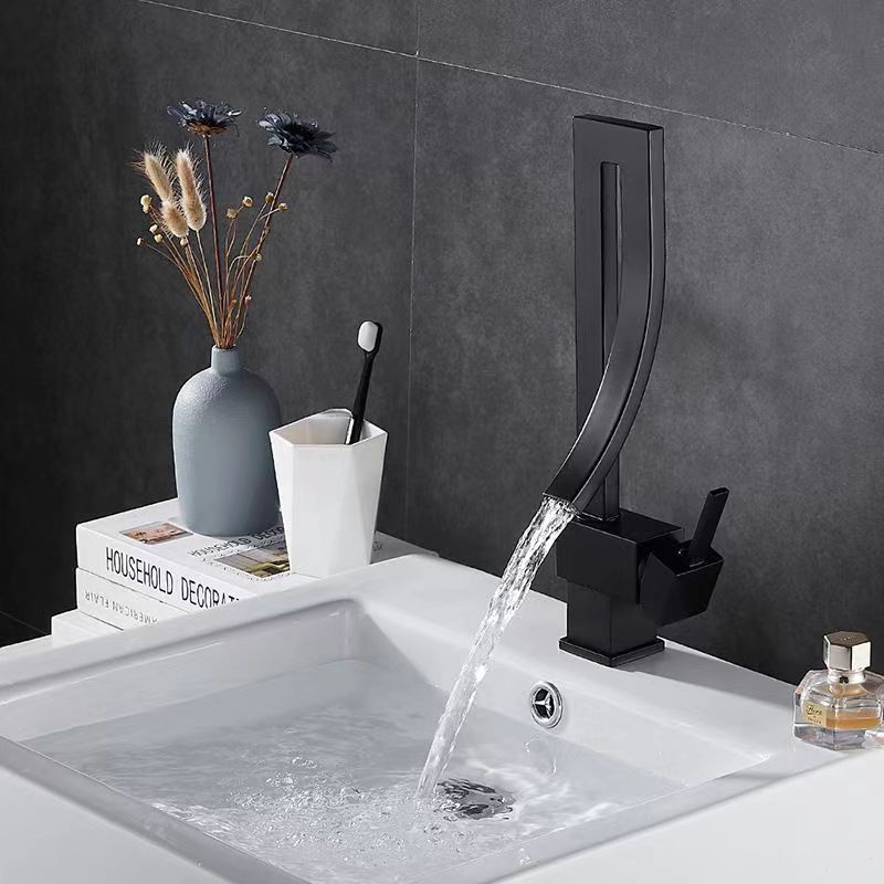 Keran putar 360 persegi hitam kabinet kamar mandi hotel keran panas dan dingin wastafel tembaga lintas batas