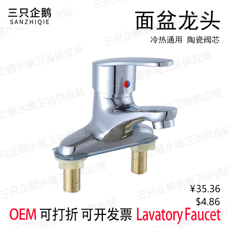 Keran kamar mandi wastafel ganda, keran kamar mandi panas dan dingin, keran campuran tiga lubang, keran paduan lubang ganda