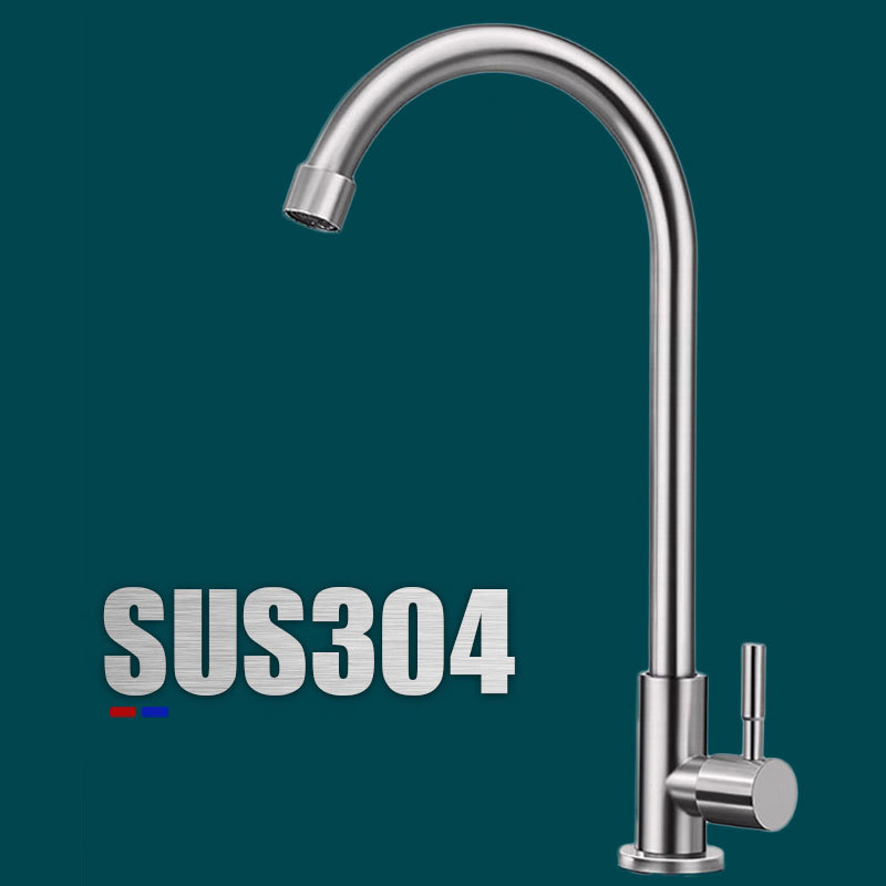 Keran pemurni air stainless steel 304, keran air minum langsung rumah tangga, keran dapur gaya Eropa, air dingin tunggal, mulut kecil