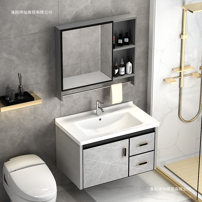 Baskom Keramik Papan Batu Set Kabinet Cermin Baskom Cuci Wajah Kamar Mandi Kombinasi Lemari Kamar Mandi Sederhana Modern