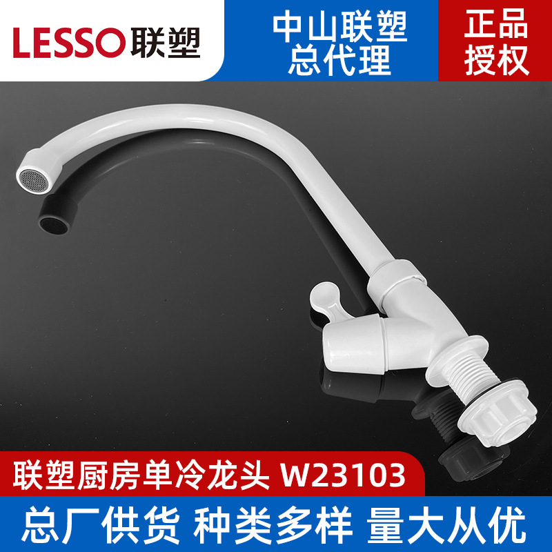 Keran plastik pvc bengkok tinggi vertikal W23103 baskom cuci sayur 4 poin keran air dingin tunggal plastik grosir
