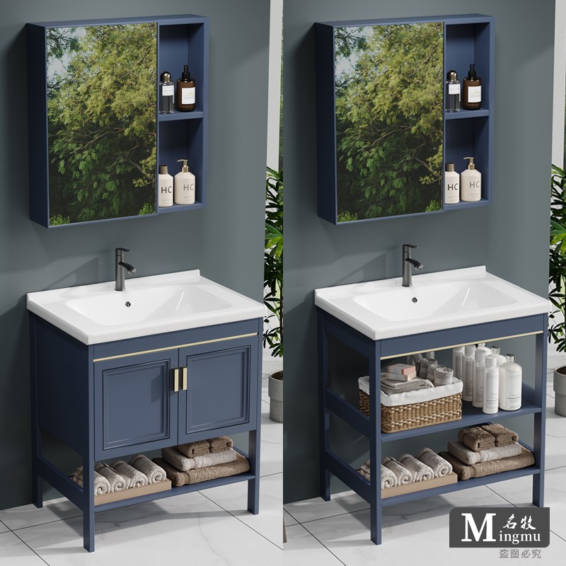 Baskom Cuci Tangan Model Lantai Aluminium Luar Angkasa Kombinasi Lemari Kamar Mandi Tipe Kecil Meja Cuci Balkon Terpadu Satu Pintu Sederhana Baskom Kamar Mandi